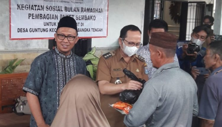 Bangka Tengah (Gunting) – Asosiasi Eksportir Timah Indonesia (AETI) kembali melanjutkan kegiatan bakti sosial (Baksos) bersedekah paket sembilan kebutuhan pokok (sembako) kepada masyarakat Bangka Belitung.