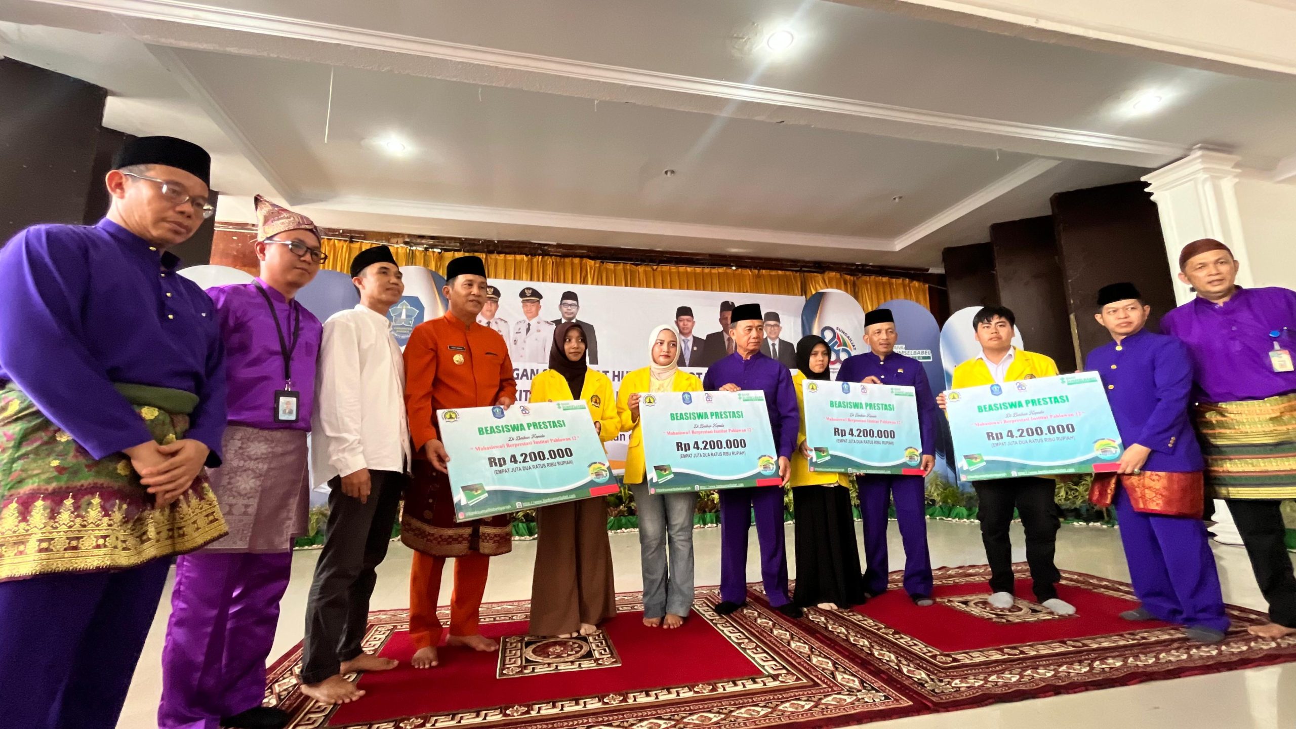 PANGKALPINANGPOST.COM, SUNGAILIAT – Komitmen mendukung akses pendidikan tinggi bagi generasi muda terus diperkuat melalui penyaluran beasiswa kepada mahasiswa Institut Pahlawan 12. Sebanyak empat mahasiswa menerima bantuan pendidikan dari Bank Sumsel Babel Syariah dalam rangkaian peringatan Hari Ulang Tahun (HUT) ke-260 Kota Sungailiat, Senin (27/4/2026).