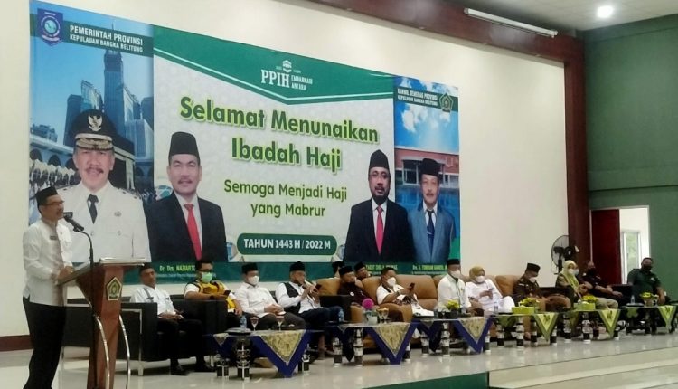 Dalam sambutannya PJ Gubernur Prov. Kep. Babel menyampaikan bahwa pelepasan jamaah Haji kloter 5 wilayah Bangka Belitung tahun 2022 akan diberangkatkan 490 menuju tanah suci, kita semua masyarakat Bangka Belitung mengucapkan selamat dan mendo’akan smoga menjadi Haji yang Mabrur, berangkat dan kembali selama menjalankan ibadah Haji selalu diberikan kesehatan dan keselamatan ” pungkasnya.