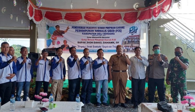 PANGKALPINANGPOST.COM (DELI SERDANG) – || Damos Simatupang resmi memimpin Pemerhati Jurnalis Siber (PJS) Kabupaten Deli Serdang setelah dikukuhkan Ketua DPD PJS Sumut, Jhon Daniel Damanik, di Kafe AMT Beringin, Senin (19/9/2022).