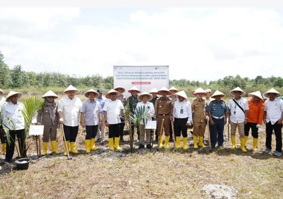 Dukung Ketahanan Pangan dan Net Zero 2060, PT Timah Tbk Bersama Kepala Staf Kepresidenan RI Tanam Sagu di Lahan Bekas Tambang