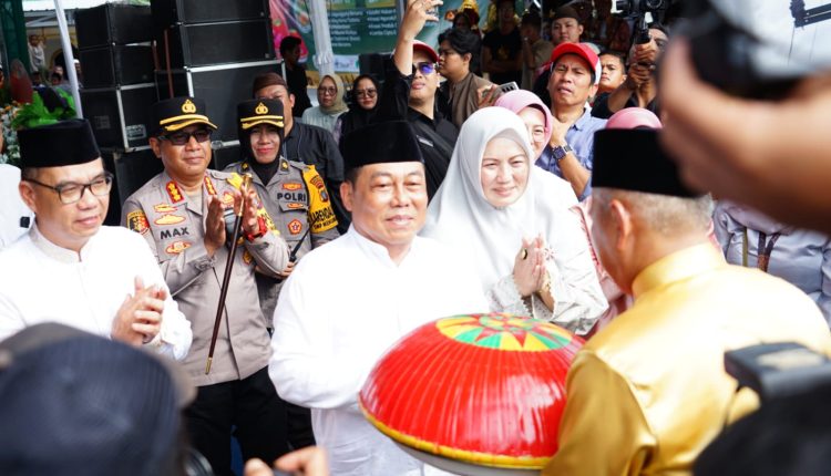 PANGKALPINANGPOST.COM (PANGKALPINANG) – Suasana penuh kebersamaan dan kegembiraan mewarnai Festival Nganggung dalam rangka memperingati Maulid Nabi Muhammad SAW 1446 H/2025 M yang digelar di Masjid Al Muqarrom, Tuatunu, Pangkalpinang, Jumat (5/9/2025). Tradisi adat Melayu ini berlangsung meriah dengan dihadiri langsung Penjabat (Pj) Wali Kota Pangkalpinang, M. Unu Ibnudin, bersama jajaran pemerintah, tokoh adat, masyarakat, dan ribuan warga yang membawa dulang. Sabtu (6/9/2025)