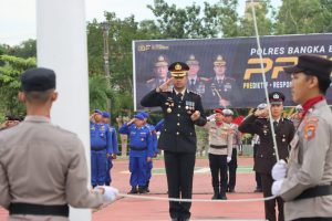 Seluruh pejabat utama (PJU) Polres Bangka Barat serta seluruh personel hadir dalam upacara ini. Suasana berlangsung tertib, penuh semangat, dan sarat dengan pesan-pesan moral serta nilai kebangsaan.