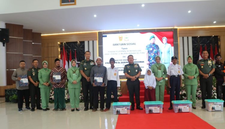 PANGKALPINANGPOST.COM (Pangkalpinang), || Kepala Staf TNI AD (KASAD) Jenderal Dr. Dudung Abdurachman, S.E.MM. didampingi Ibu Ketua Umum Persit Kartika Chandra Kirana Ny. Rahma Dudung Abdurchman Berikan Bansos ke 7 Ponpes, 50 paket Sembako Anak Yatim dan 112 Anak Stunting, bertempat di Aula Makorem 045/Gaya jl. Pulau Bangka Kel. Air Itam Kec. Bukit Intan Kota Pangkalpinang, Kamis 18/08/2022.