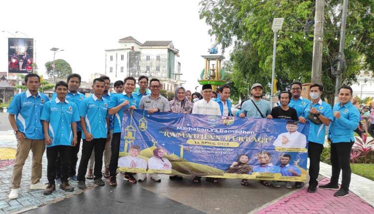 PANGKALPINANGPOST.COM (KOBA) – || Mengusung tema “Gelar Kebahagiaan Penuh Berkah Di Bulan Ramadan” PK Koba KNPI Bangka Tengah (Bateng) menggelar Ramadan Berbagi di Bundaran Tugu Ikan Kota Koba pada Jumat (14/4/2023).