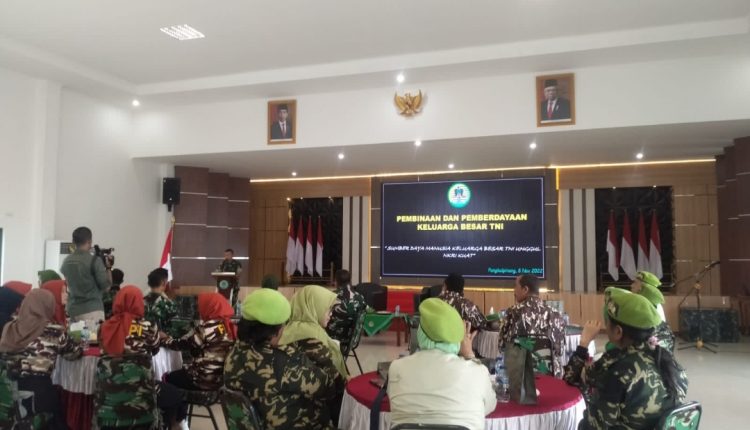 “Sebagai keluarga besar TNI hendaknya dapat menjadi agen perubahan dan garda terdepan dalam mengisi pembangunan di NKRI tercinta ini,” kata Komandan Resort Militer (Danrem) 045/Garuda Jaya, Brigjen TNI (Inf) Ujang Darwis yang disampaikan oleh Mayor (Inf) Subkhan selaku pemateri dalam giat Komunikasi Sosial (Komsos) digelar di aula Mokarem 045/Garuda Jaya, Pangkalpinang, Selasa (8/11/2022) pagi.