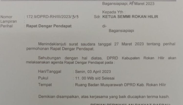 pmembuat Aliansi Mahasiswa Rokan Hilir Bersatu (AMRB) melayangkan surat untuk Rapat Dengar Pendapat dengan DPRD Kabupaten Rokan Hilir.