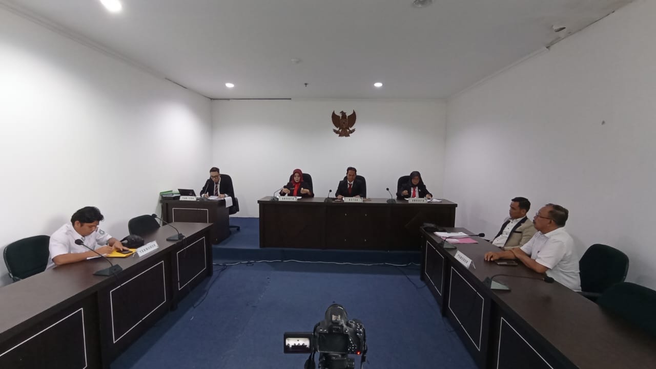 Persidangan dipimpin oleh Ketua Majelis Komisioner Ahmad Tarmizi, S.P., C.Med., didampingi Anggota Majelis Fahriani, S.H., M.H., C.Med. dan Ita Rosita, S.P., C.Med., serta Panitera Pengganti Abrillioga, S.H., M.H.