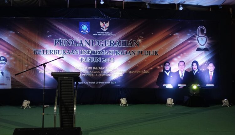 Penganugerahan Keterbukaan Informasi Badan Publik tahun 2023 akan dihelat pada Rabu, 20 Desember 2023, di Bangka City Hotel, Kota Pangkalpinang, Selasa (19/12/2023).
