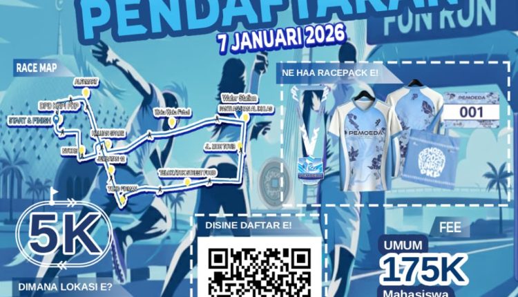 Antusiasme peserta diakomodir dengan pendaftaran daring yang dibuka hingga 7 Januari 2026 melalui tautan [https://bit/ly/PEMOEDAFUNRUN2025](https://bit/ly/PEMOEDAFUNRUN2026).