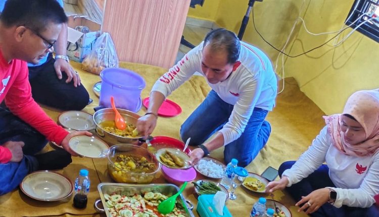 Terlihat Bupati Bangka, Mulkan, SH.MH begitu menikmati Lempah Tugang Pucuk Mentaun di hadapannya. Masakan yang lain nyaris tak disentuhnya. Tampaknya, ia begitu terpikat pesona cita rasa Lempah Tugang Pucuk Mentaun tersebut