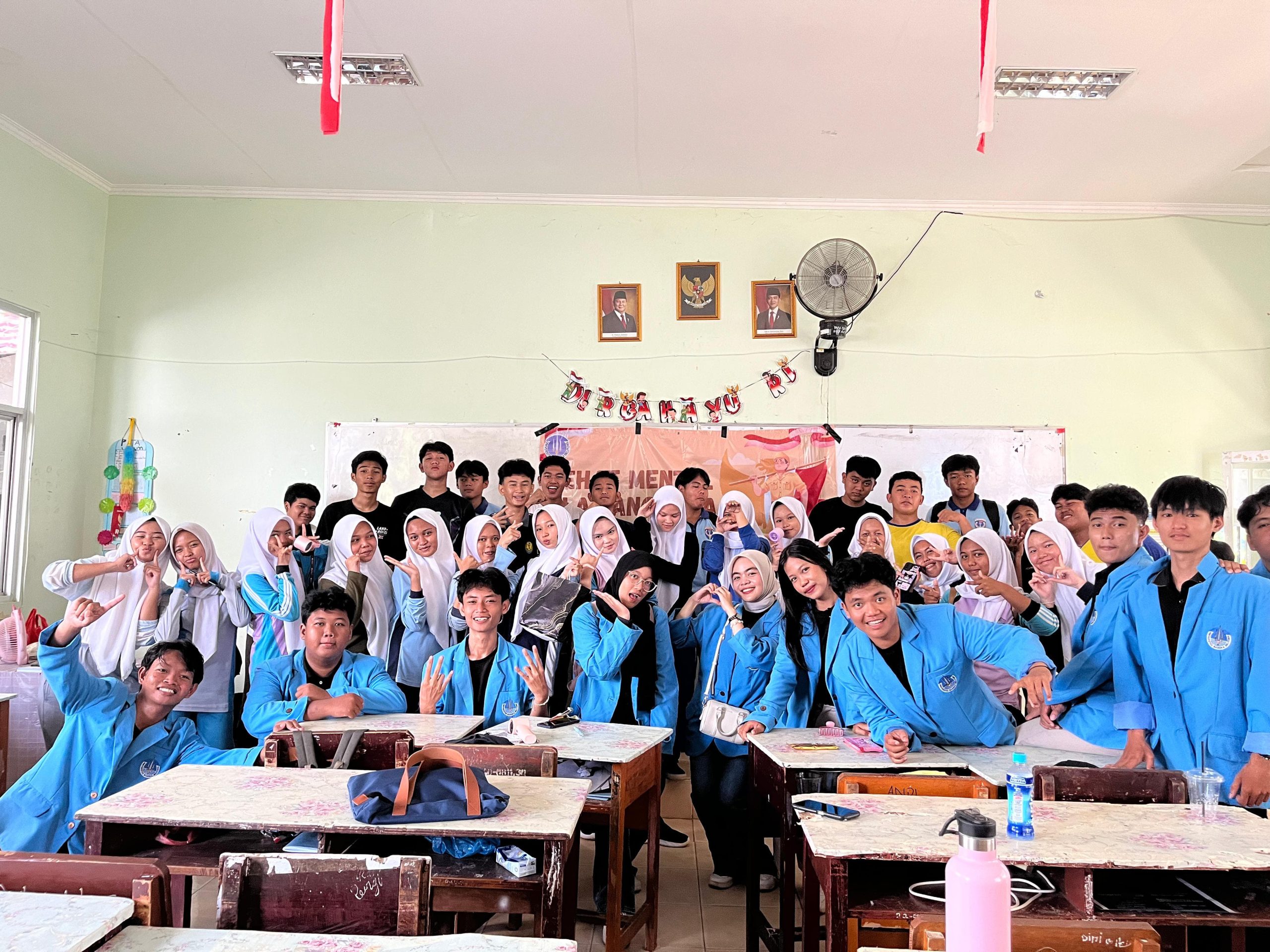 Kegiatan dimulai dengan pembukaan, dilanjutkan penyampaian materi tentang pentingnya menjaga kesehatan mental di tengah perkembangan teknologi yang pesat. Mahasiswa menghadirkan beragam media edukasi seperti spanduk dan visual interaktif untuk memudahkan pemahaman siswa. Suasana menjadi lebih hidup dengan permainan “Tebak Gaya” yang melibatkan seluruh peserta agar pesan yang disampaikan tidak membosankan.