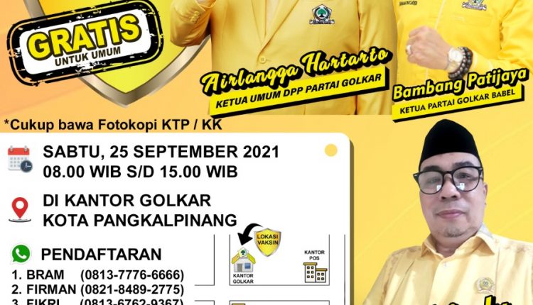 Rencananya, dengan menggandeng pihak kepolisian, Partai Golkar di Babel mengadakan vaksinasi massal tahap pertama di Kota Pangkalpinang dan Kabupaten Belitung Timur pada Sabtu, 25 September 2021.