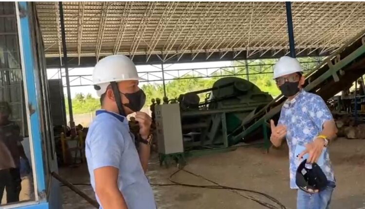 Menindaklanjuti kemitraan antara KBO Babel dan Kopetindo, Penanggungjawab KBO BABEL Rikky Fermana meninjau proses pengolahan limbah pelepah sawit di Pabrik PT Mentari Biru Energi di Desa Air Duren Kabupaten Bangka, Senin (6/04/2024)