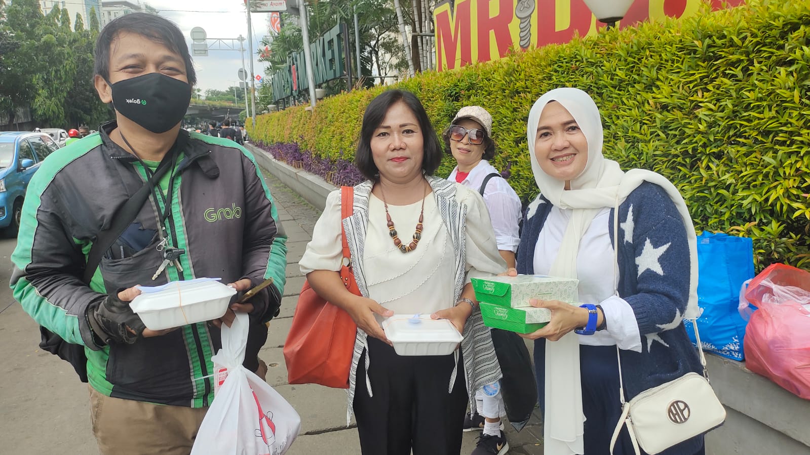 Tampak hadir Syafrudin Budiman SIP Ketua Umum DPP Partai UKM Indonesia mendampingi jajaran pengurus dan kader saat acara. Pembagian ini diberikan kepada driver ojek online, karyawan kalibata city dan pedagang kaki lima (PKL).