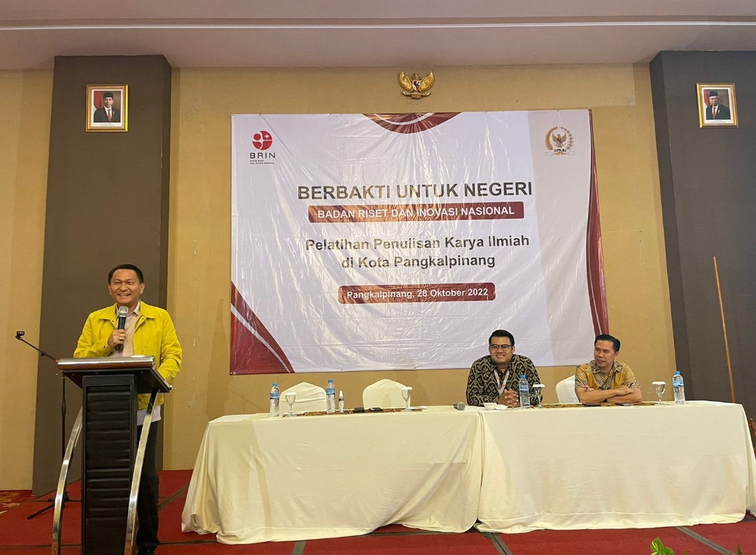 PANGKALPINANGPOST.COM (Pangkalpinang) – || Bertepatan dengan Hari Sumpah Pemuda yang ke-94 tahun, anggota Komisi VII DPR RI Fraksi Partai GOLKAR, Bambang Patijaya bersama Badan Riset dan Inovasi Nasional (BRIN) gelar pelatihan karya tulis ilmiah bagi mahasiswa yang merupakan mitra kerja dari komisi VII di Swissbelhotel Kota Pangkalpinang pada Jumat 28 Jumat 2022.