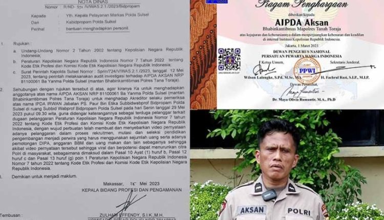 Beberapa waktu lalu Aipda Aksan membuat video tentang pengalaman dan pengamatannya terhadap kinerja para personil Kepolisian Republik Indonesia, khususnya terhadap pimpinannya, Kapolres Palopo dan Kapolres Tana Toraja. Video Aksan dengan tema sentral ‘Bersihkan Polri dari Mafia’ viral di berbagai platform media sosial maupun di media-media online.