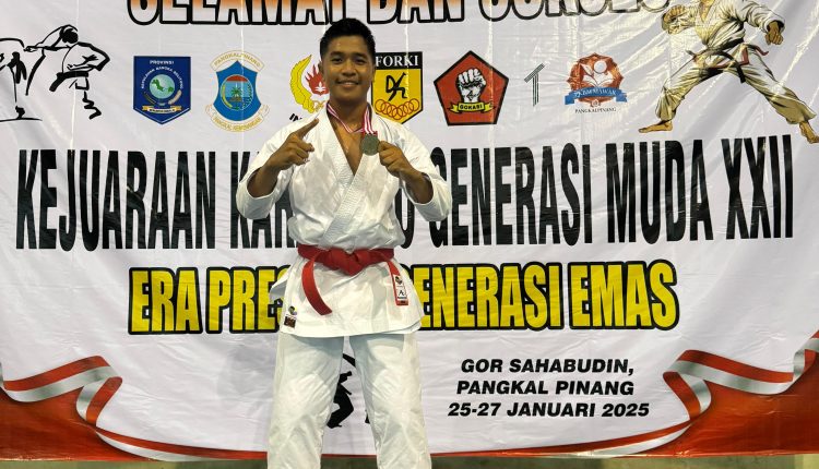 Pangkalpinangpost.com~//- Pangkalpinang – Bripda Naufal Fadilah, personel Brimob Kompi 1 Pelopor Sungailiat Polda Bangka Belitung, berhasil mengukir prestasi gemilang dengan meraih medali emas pada Kejuaraan Provinsi (Kejurprov) Piala Generasi Muda Gokasi XXII, Sabtu (25/1/2025).