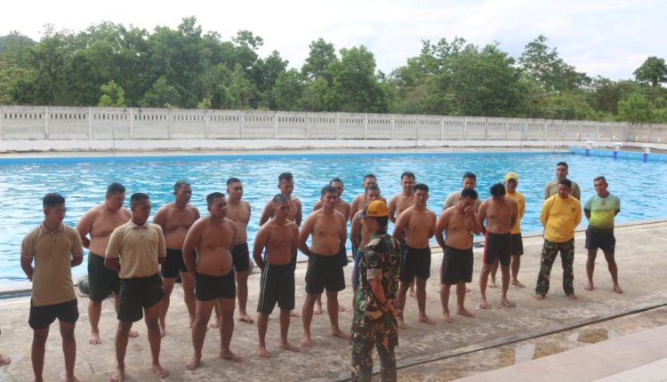 PANGKALPINANGPOST.COM (Pangkalpinang). || Seluruh Prajurit Korem 045/Garuda Jaya melaksanakan test Ketangkasan Renang Militer Dasar selama Dua hari Rabu dan Kamis 26 sampai 27/10/2022 di kolam Renang Aquatik di Desa Beluluk Kecamatan Pangkalanbaru Bangka Tengah.