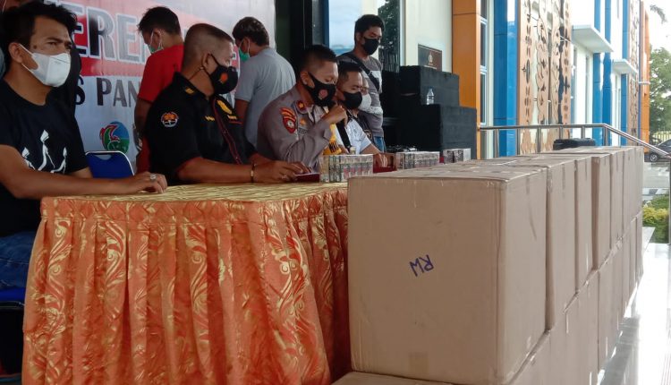 Selain barang bukti, ada beberapa orang diduga  ikutserta terlibat dalam tindak pidana penimbunan dan perniagaan rokok ilegal tersebut, digelandang ke Mapolres Pangkalpinang, Senin (9/08/2021).
