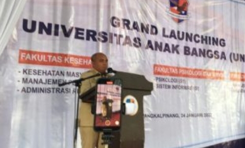 Hal ini disampaikan Molen saat menghadiri acara peresmian (grand launching) kampus Universitas Anak Bangsa yang terletak di jalan Pinus 1 Kelurahan Kacang Pedang, Kecamatan Gerunggang, Kota Pangkalpinang, Selasa (24/1/2023).