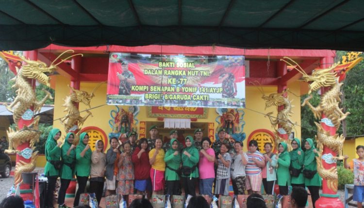 Dalam rangka memperingati HUT TNI ke 77 Kompi Senapan B Yonif 141/AYJP Brigif 8/Garuda Chakti Mengadakan Kegiatan Bakti sosial di 2 (dua) kecamatan yaitu kecamatan Pemali (kelenteng cetya dharma air duren) dan kelenteng yang berada di Bedukang kecamatan Riau Silip.
