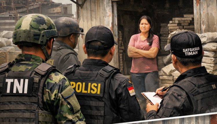 PANGKALPINANGPOST.COM, (Bangka) – Satgasus Timah bersama personel BKO Korem 045/Garuda Jaya Provinsi Kepulauan Bangka Belitung melakukan pemantauan terhadap smelter PT Panca Mega Persada (PMP) yang tidak aktif di Kawasan Industri Jelitik, Sungailiat, Jumat (2/1/2026). Kegiatan ini dilakukan menyusul adanya laporan masyarakat terkait dugaan aktivitas mencurigakan berupa penimbunan pasir timah dan balok timah di area smelter yang diketahui sudah lama tidak beroperasi. Sabtu (3/1/2025)