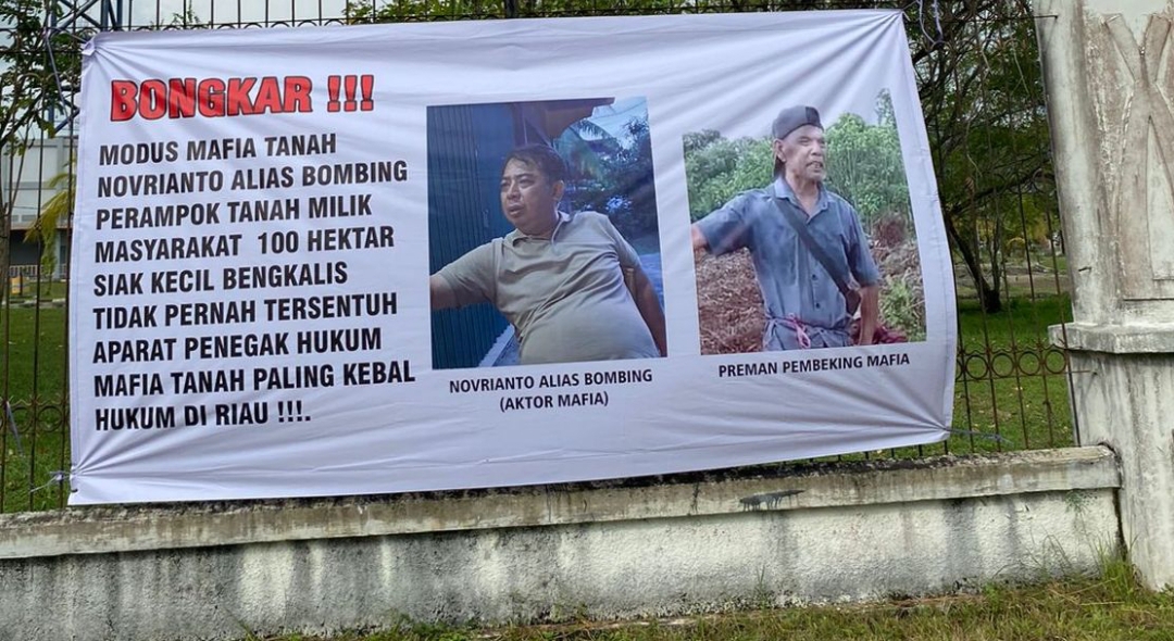 Spanduk Dugaan Konflik Lahan Tangkap Mafia Tanah Beredar di Pekanbaru