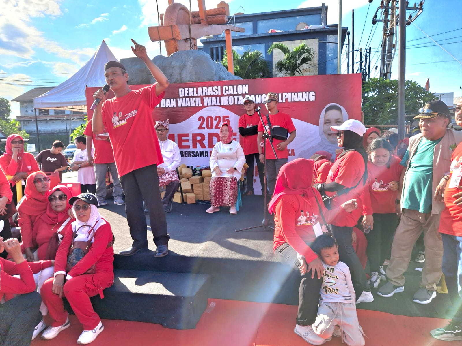 Pangkalpinang, Pangkalpinangpost.com — DERU semangat dan getaran harapan rakyat tumpah ruah di jantung kota. Ribuan massa mengenakan baju Kaos berwarna merah di Tugu Kerito Surong dan bendera putih bertuliskan “MERDEKA” berkibar di sepanjang jalan utama Pangkalpinang, menandai momentum penting bagi kota ini: Deklarasi Paslon Independen MERDEKA dalam kontestasi Pilkada Ulang Pangkalpinang 2025, Minggu (15/6/2025) sore.