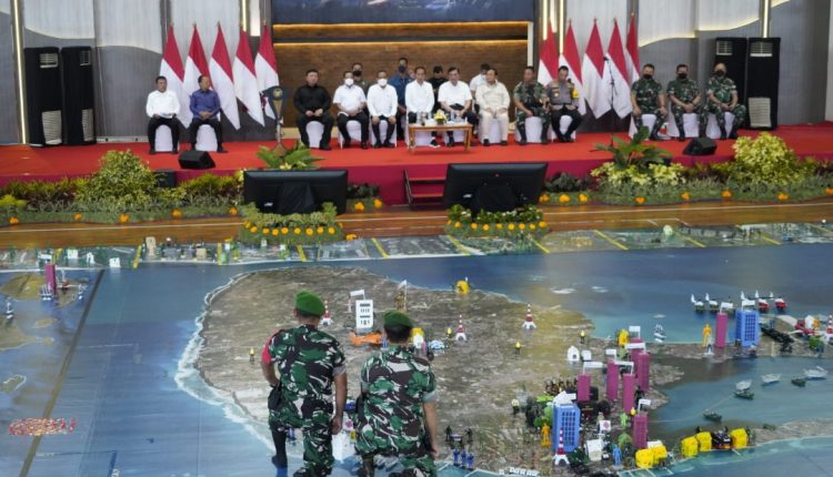 PANGKALPINANGPOST.COM (Denpasar) – || The President of Republic Indonesia, Ir. H. Joko Widodo observed the implementation of Tactical Floor Game (TFG) for Security of the G20 Summit at the Mabes TNI level, which was led directly by the Panglima TNI General Andika Perkasa, at GOR Praja Raksaka, Kepaon, Denpasar, on Wednesday (9/11/2022).