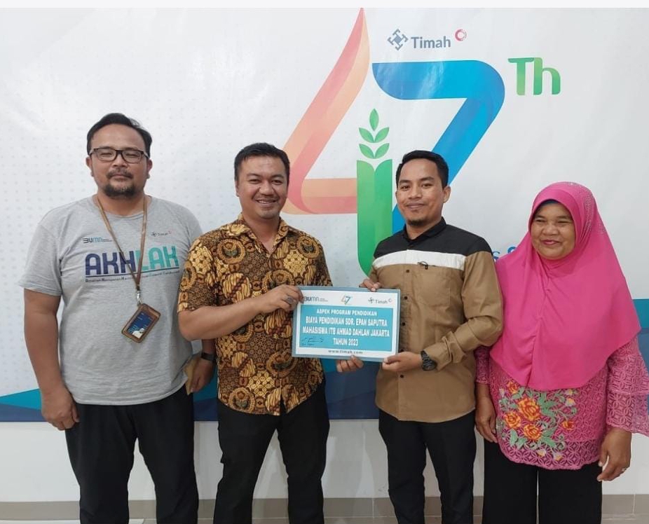 PANGKALPINANGPOST.COM (BELITUNG TIMUR) – || Untuk mendukung peningkatan kualitas pendidikan bagi masyarakat di lingkar tambang, PT Timah Tbk ikut membantu meringankan biaya pendidikan Epan Saputra Mahasiswa Institut Teknologi Bisnis (ITB) Ahmad Dahlan Jakarta Tahun 2023.