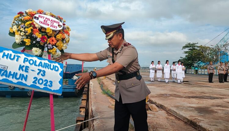 Bangka Barat – Personel Sat Polairud bersama anggota Polres Bangka Barat Lainnya melaksanakan upacara tabur bunga dalam rangka HUT Polairud ke 73 di dermaga peltim Kecamatan Muntok kabupaten Bangka barat, Kamis (23/11/2023).