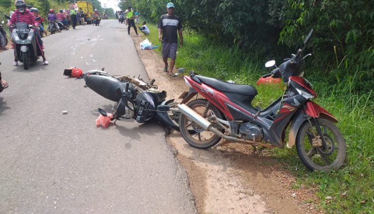 PANGKALPINANGPOST.COM BANGKA TENGAH (KOBA) – Melebar saat ditarik, motor kharisma nomor polisi BN 4035 QN bertabrakan dengan mobil dum truk isuzu warna kuning plat polisi BN 8032 TZ. Akibat tabrakan tersebut, pengendara sepeda motor bernama Syamsul Arifin (23) meninggal dunia di Tempat Kejadian Perkara (TKP).