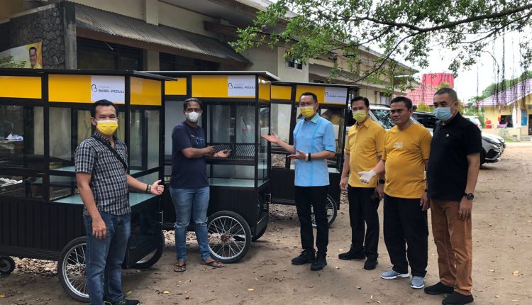 “Dalam penyerahan bantuan gerobak kepada masyarakat pelaku UMKM, sebanyak 20 gerobak yang langsung diserahkan oleh pak Bambang Patijaya, Anggota DPR RI yang sekaligus ketua DPD Partai GOLKAR secara simbolis kepada pelaku usaha kecil, kelompok pemuda di Babel,” ungkapnya.