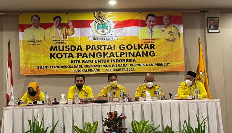 PANGKALPINANGPOST.COM PANGKALPINANG – Dewan Pimpinan Daerah Partai Golongan Karya (DPD Golkar) Kota Pangkalpinang, menggelar Musyawarah Daerah (Musda) dengan tema Kita Satu Untuk Indonesia “Solid Terkonsolidasi, Berjaya pada Pilkada, Pilpres dan Pemilu” di Hotel Cordela, Minggu (19/9/2021).